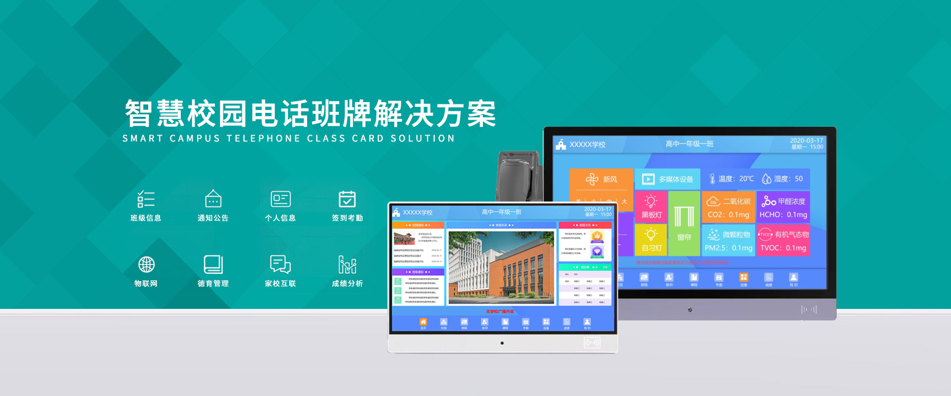 以及二氧化碳、甲醛濃度等教室設(shè)備環(huán)境進(jìn)行一鍵控制,上課、自習(xí)、午休等多種場(chǎng)景模式,